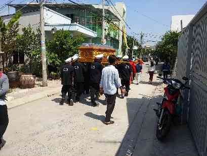 Đội của chú Ba Oanh giúp quan tài cùng phụ kiện tang lễ cùng nhân lực trợ táng .