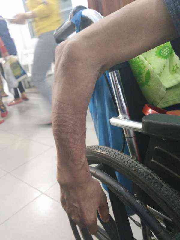 Hằng ngày, cô đẩy chú đi ăn cơm từ thiện hoặc ai cho gì ăn nấy sống qua ngày, tối thì ngủ ven ở bệnh viện An Bình. Đã mấy tháng rồi vết thương chưa được vệ sinh nên rất ngứa và khó chịu. Xương tay thì đã bị gãy lìa...