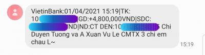 Xin cảm ơn anh Xuan Le Vu và chị Duyen Tuong đã chung tay giúp đỡ 3 chị em cháu Lanh 400,000đ/tháng từ tháng 4/2021.