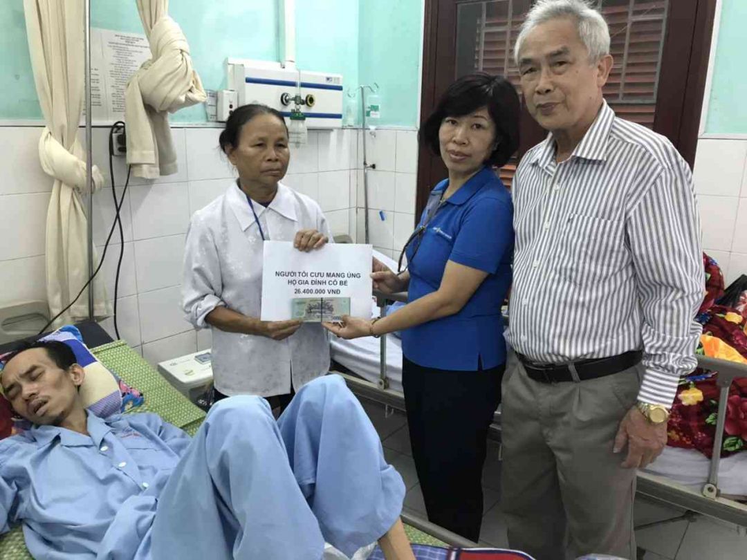 Ngày mai em về Thái Bình trao toàn bộ số tiền này cho gia đình bà Bé ạ. Ngày mai có Bác Hải Nhuận, chính quyền xã và thôn, cùng bên phòng xã hội của bệnh viện Đa Khoa Tỉnh Thái  Bình ạ.