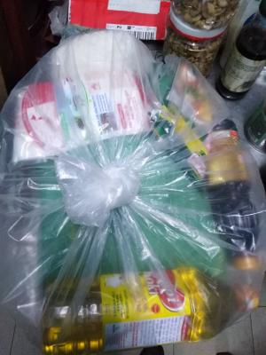 Trường được bà con cho một số Gạo, nhu yếu phẩm khác như dầu ăn, bột ngọt, hạt nêm, đường và nước tương nhưng không dùng tới nên xin được tặng lại cho cô Cúc.