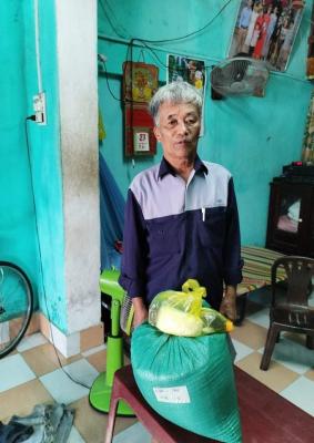 Hôm nay em đã đi trao phần quà CMTX tháng 5/2021 đến hộ bác Hòa rồi ạ.