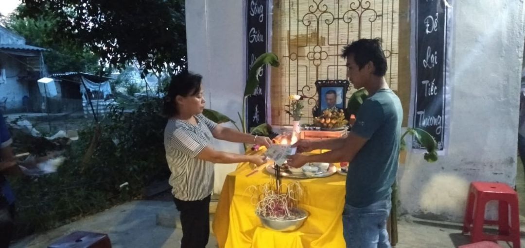 Do đám tang làm gấp 07h00 ngày 20/5 sẻ đưa anh ra đồng nên VKS  xin tạm ứng 6.000.000 để nhóm trao cho gđ kịp mua quan tài cho anh