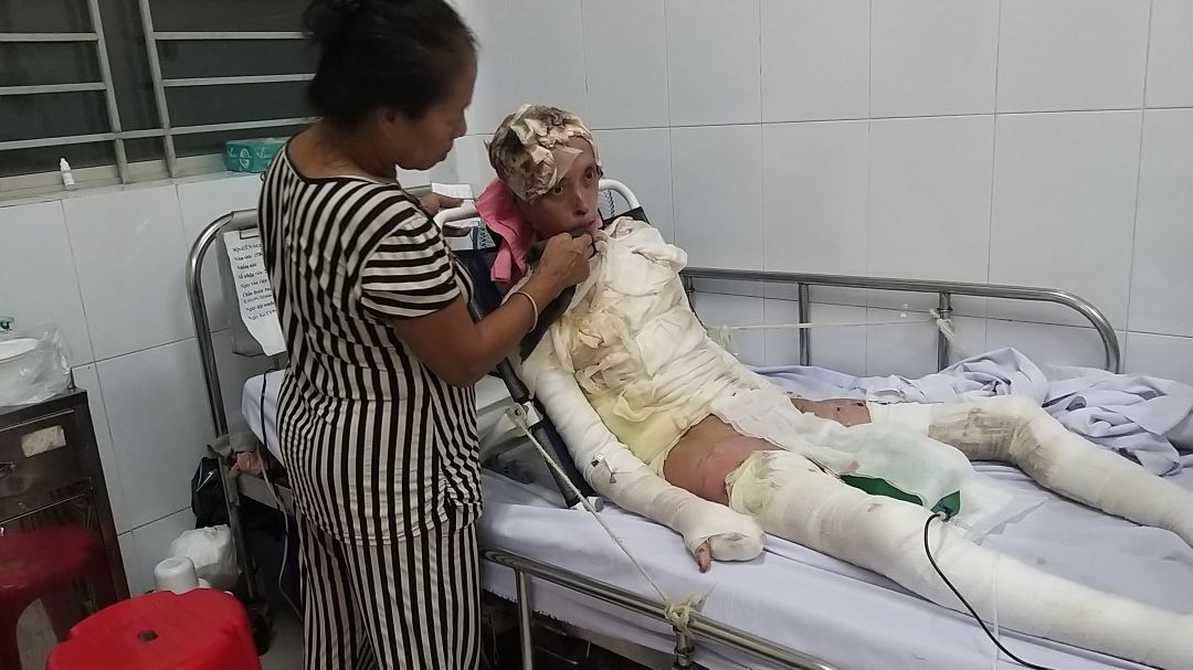 Đầu tháng 3 anh Mong bị nổ bình gas ở nhà khi đang nấu mì tôm ăn. Anh Mông nhập ở Đồng Xoài, nhưng do tình trạng bệnh nặng quá bác sỹ đã chuyển nên bệnh viện Chợ Rẫy để điều trị vào ngày 8 tháng 03.