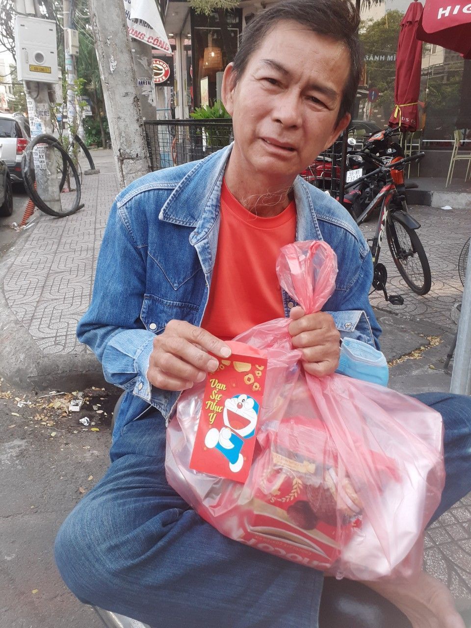 Hình ảnh trao quà của anh Sáu Nhân...