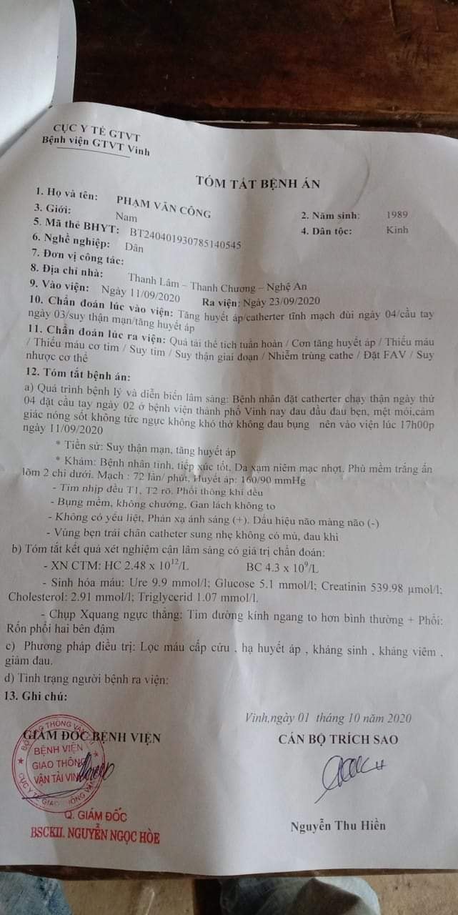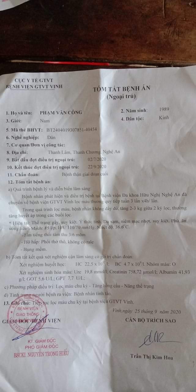 Tác giả Chủ đề: Nghệ An - Bạn Công suy thận giai đoạn cuối  (Đã xem 1668 lần)