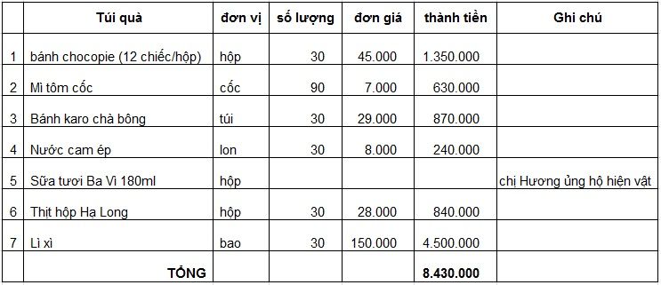 Cảm ơn BQT đã qua tâm phê duyệt chương trình, để người nghèo đón tết trọn vẹn hơn, đồng thời có thể cân đối quỹ của diễn đàn, nhóm xin đề xuất 02 phương án:
