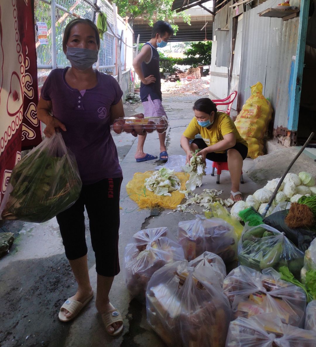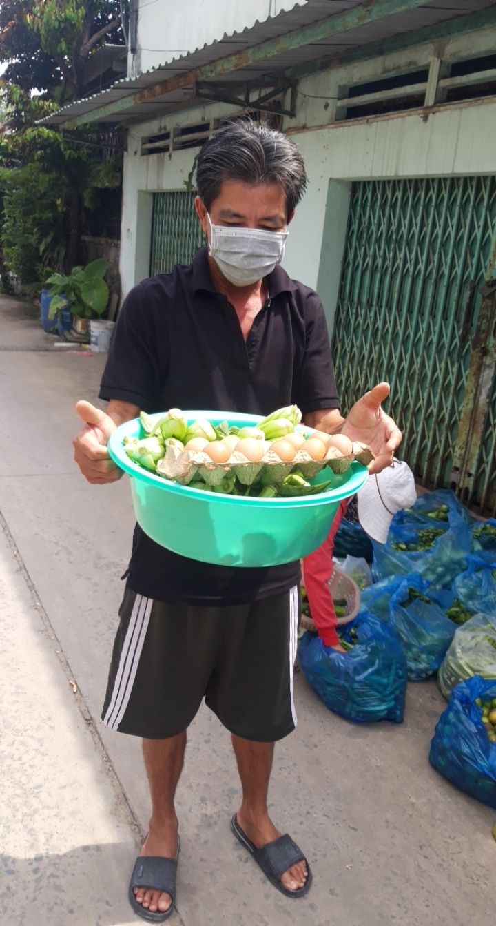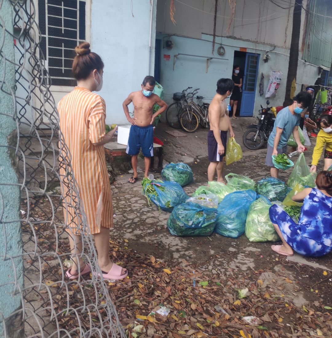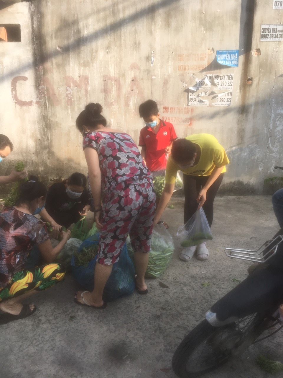 Tieuhuongduong xin gởi hình ảnh nhận rau củ và quà hỗ trợ tăng cường sức đề kháng mùa dịch của nhóm thợ hồ trọ tại đường 1A, phường Long Thạnh Mỹ, thành phố Thủ Đức.
