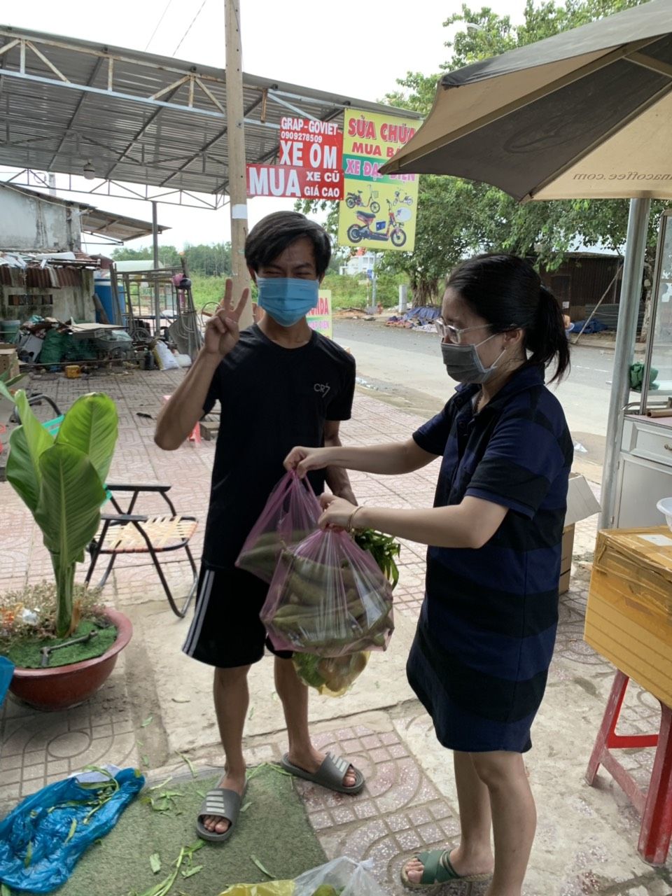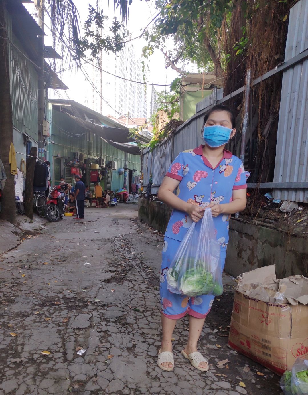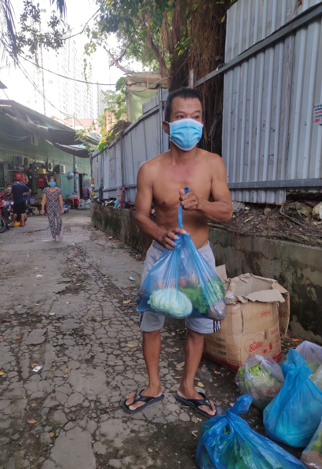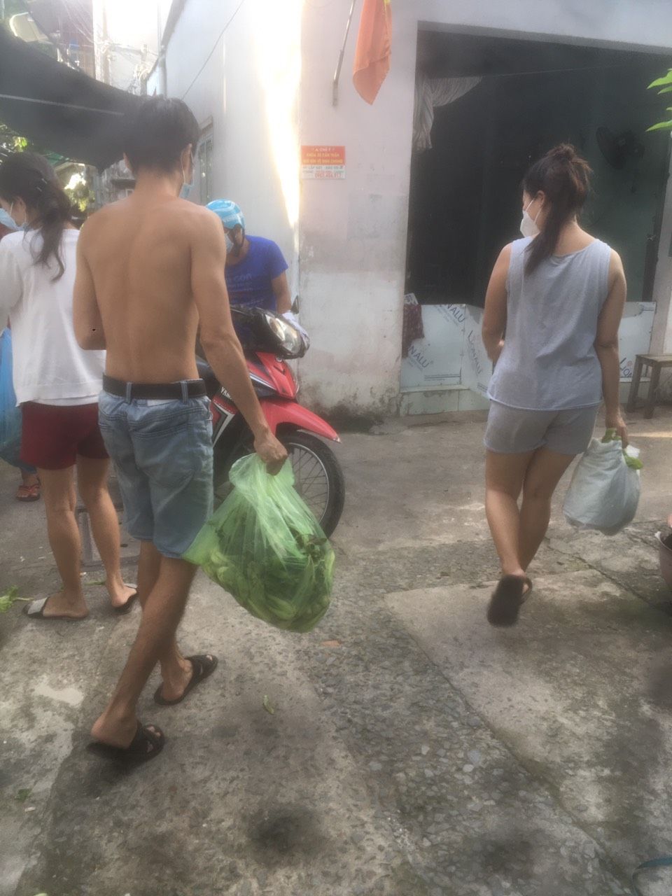 Tieuhuongduong xin gởi hình ảnh nhận rau củ và quà hỗ trợ tăng cường sức đề kháng mùa dịch của nhóm thợ hồ trọ tại đường 1A, phường Long Thạnh Mỹ, thành phố Thủ Đức.