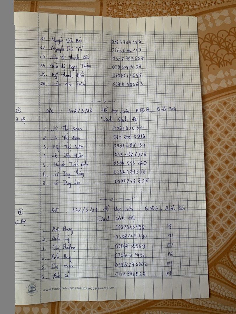 Tieuhuongduong xin gởi danh sách các thợ hồ xin hỗ trợ gạo, thực phẩm đang ở trọ tại đường 1A, phường Long Thạnh Mỹ, thành phố Thủ Đức.