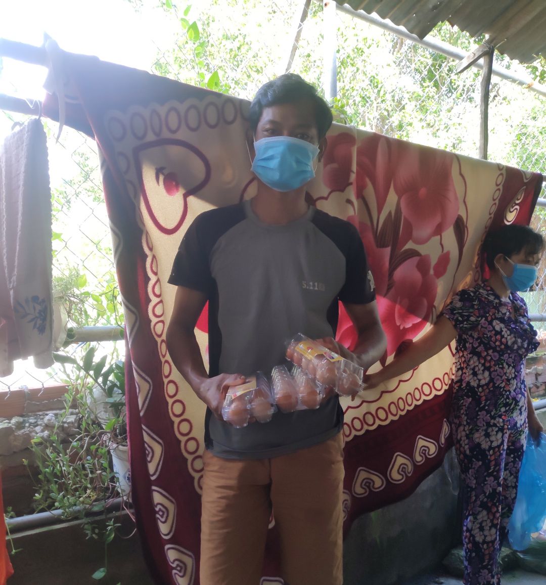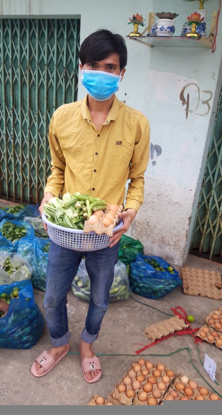 Hôm nay ngày 22 tháng 8 năm 2021 Mai Trâm cùng 2 người ở xóm trọ  có đến quán cơm SG nhận rau củ quả và hột gà hỗ trợ 74 hộ gia đình có đăng ký thuê trọ cho 2 địa chỉ 1107/190/4. và địa.chỉ 1107/60 đường Dương Bạch Mai phường 5 Quận 8 như sau.