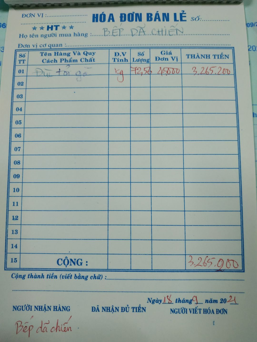Gửi cả nhà chi phí ngày 19/09/2021: