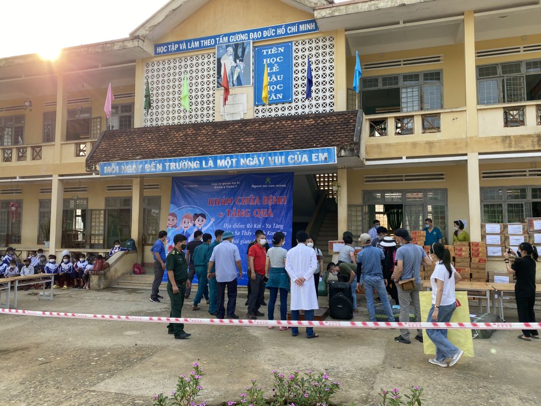 Sáng nay, đoàn bắt đầu khám bệnh và phát quà cho các cháu ạ. Em sẽ update thông tin liên tục