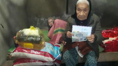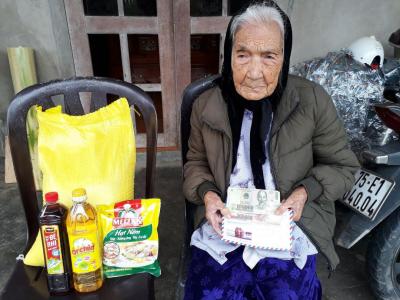 Trao quà Tết của MTQ đến với mẹ con Mệ Nghẹt. Mệ vui lắm lắm.