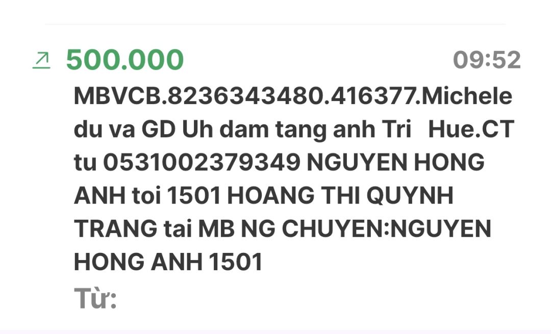 Michele_du va Gia đình ủng hộ đám tang của anh Trí 500,000₫ .