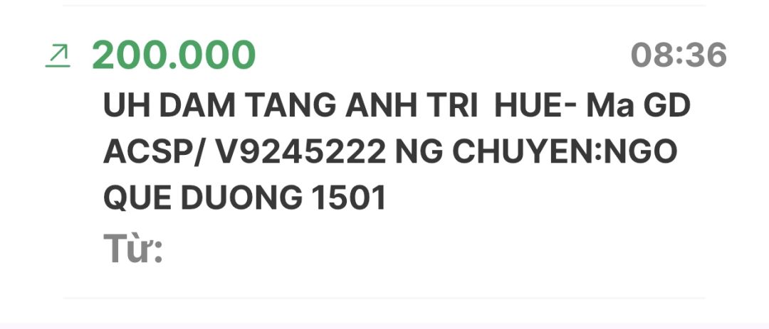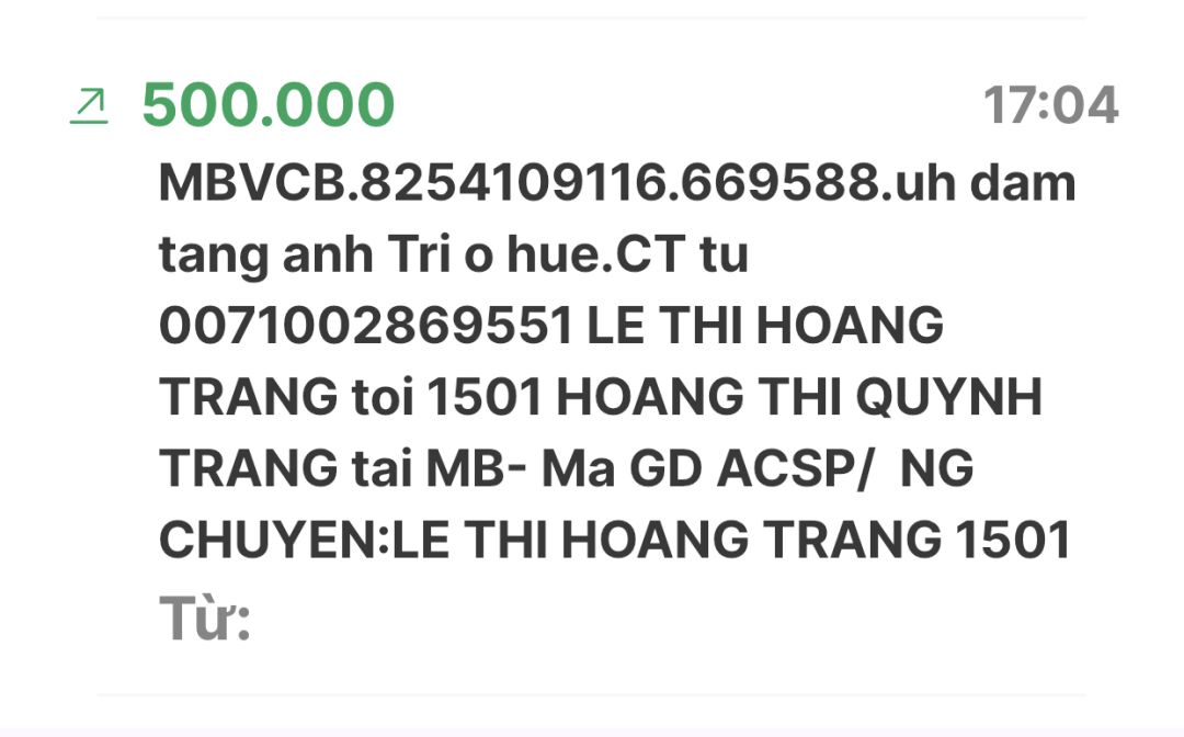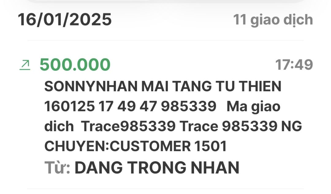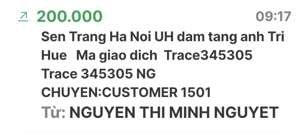 Số tiền ủng hộ Mai táng anh Trí 10.000.000đ, Quỹ đã chuyển tiền vào tài khoản VCB của chị Khánh Ly, nhờ chị check giùm em nhé. Mong anh về cõi giới an lành.