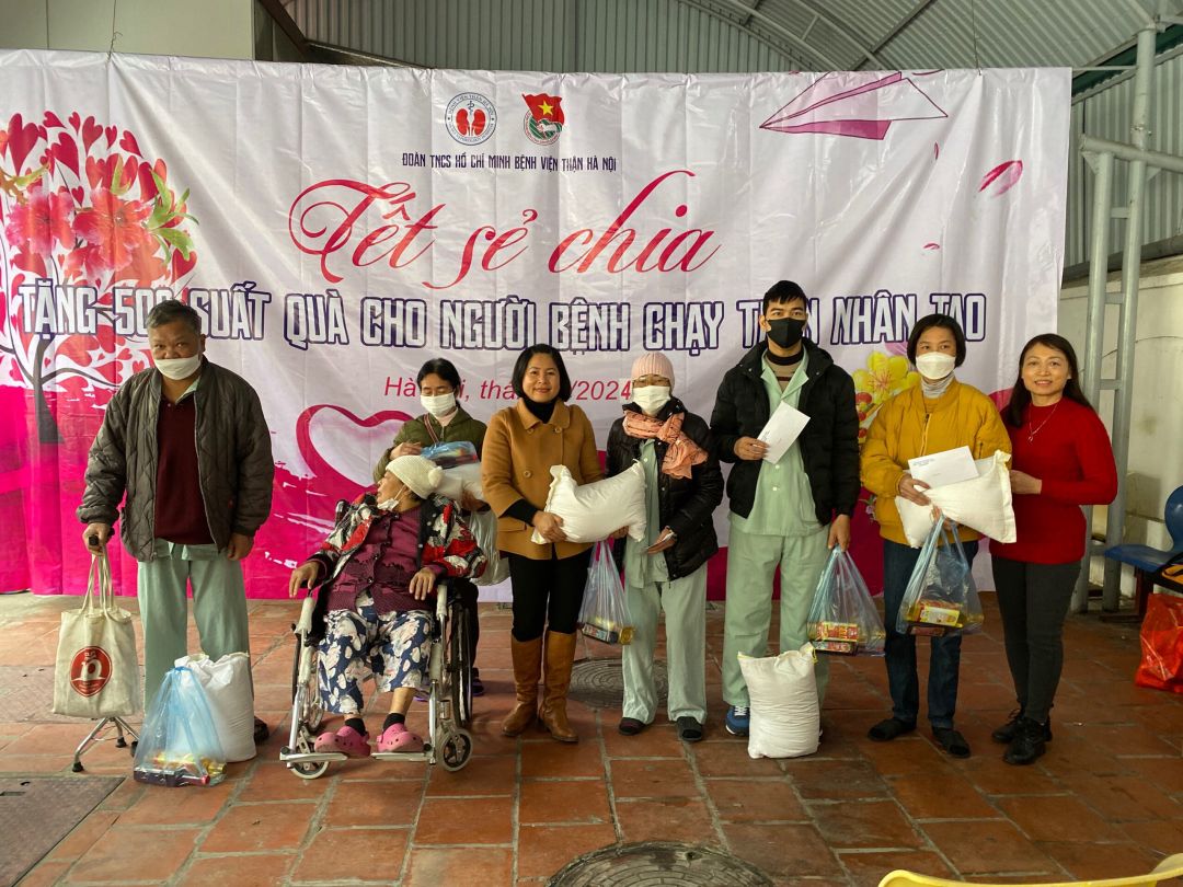200 suất quà tết đã được trao tận tay các bệnh nhân có hoàn cảnh khó khăn tại bệnh viện Thận Hà Nội.