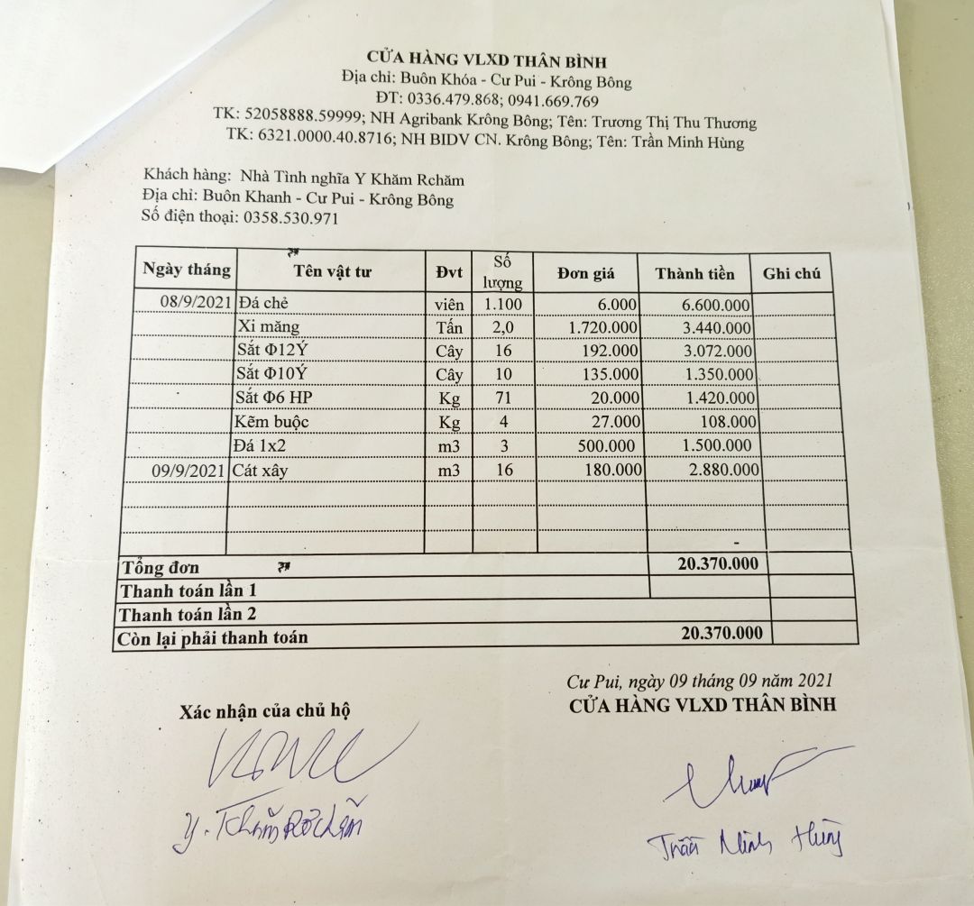 Mình chụp lại các hoá đơn, biên nhận mua vật liệu để xây dựng ngôi nhà số 37 đây ạ. Và có ứng tiền trước của UBMT TQ xã để thanh toán tiền công thợ xây ngôi nhà.