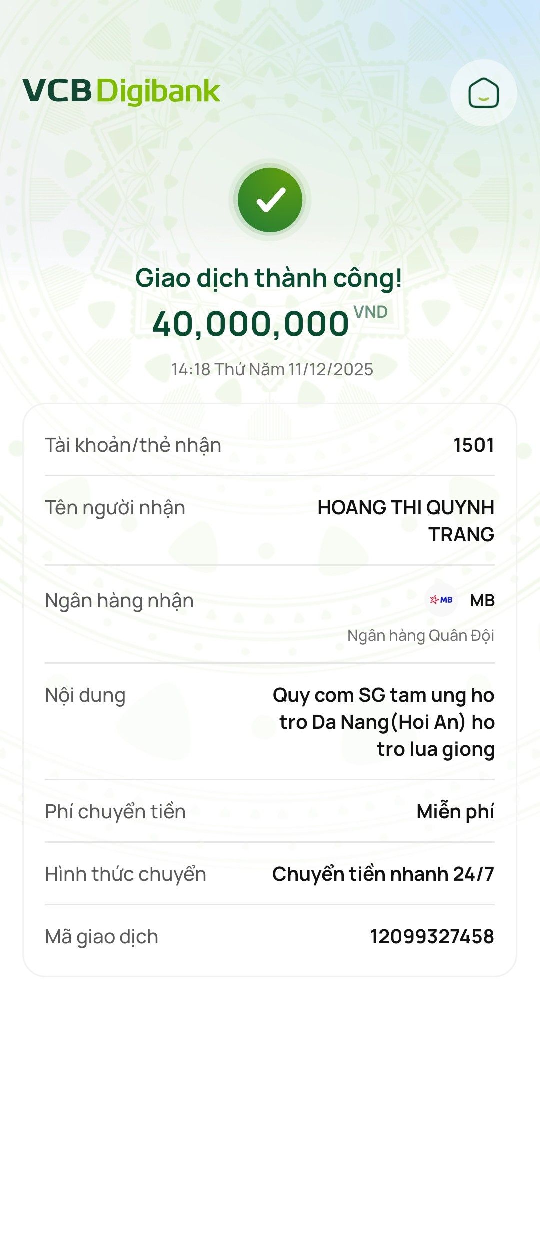 Nhờ cô @lathuvang hỗ trợ điều chuyển 40.000.000đ từ quỹ Cơm 2000đ SG sang chương trình để kịp thời triển khai.