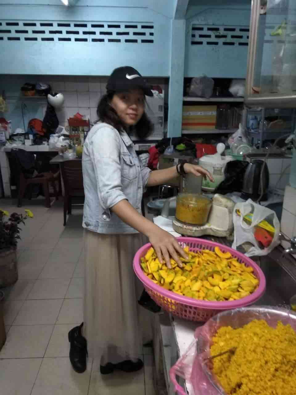 Từ sáng sớm, anh chị tập trung tại nhà chú sáu, để nấu cháo. Rồi mỗi người đóng góp một chút kỹ năng để phụ nấu cháo. Tôi thì phụ trách nhặt hành, lựa hành. Tôi cảm thấy hứng thú, vì đã lâu lắm rồi tôi mới có dịp vào bếp núp. Đây cũng là một trong những sở thích của tôi lúc rảnh. Còn anh chị khác phụ trách bổ bí, say bí. Hôm nay, tôi đặc biệt ấn tượng với 1 thành viên với kỹ năng mài dao điêu luyện, chị ý khiến tất cả thành viên phải trầm trồ "Ồ".