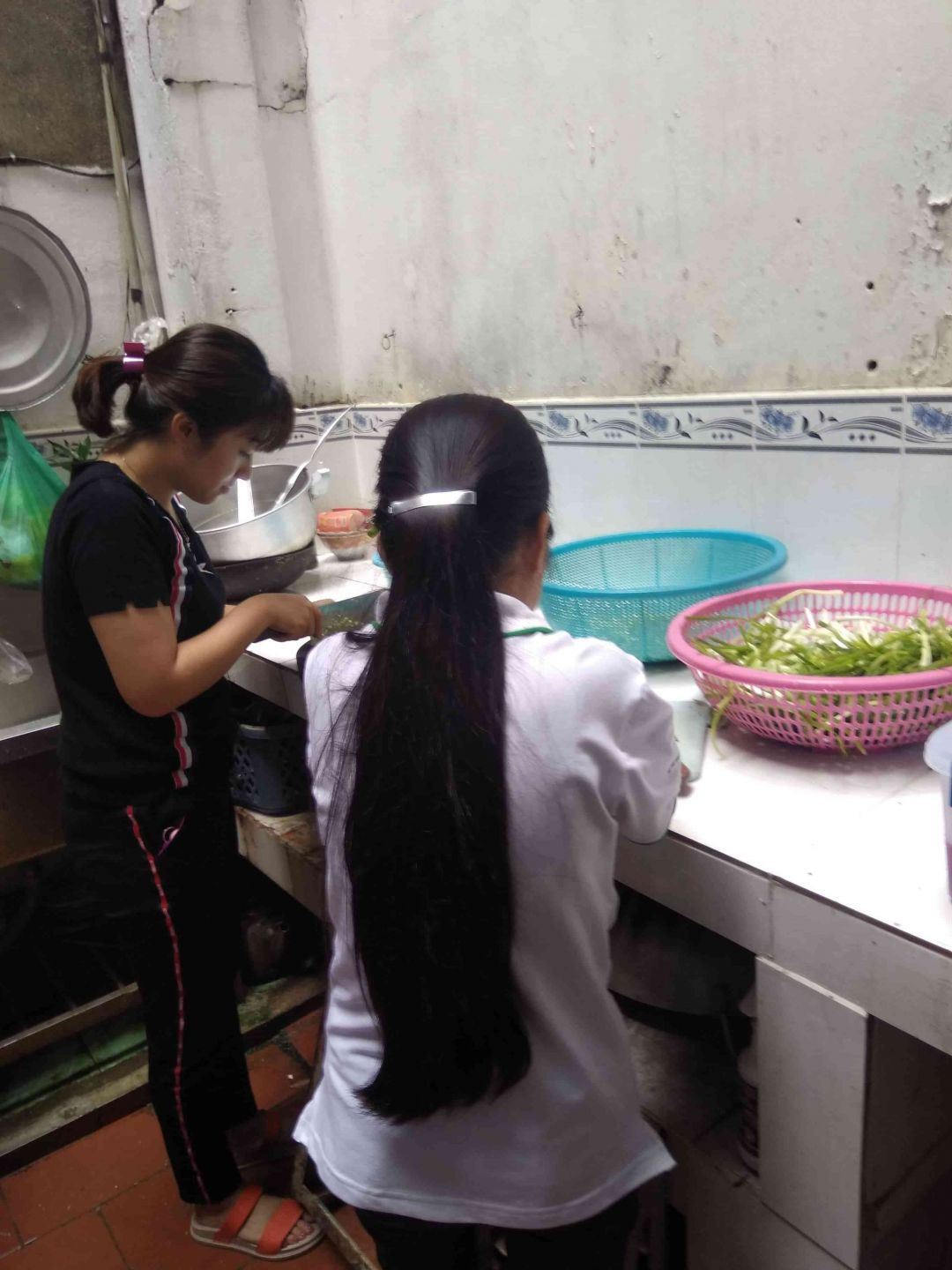 Từ sáng sớm, anh chị tập trung tại nhà chú sáu, để nấu cháo. Rồi mỗi người đóng góp một chút kỹ năng để phụ nấu cháo. Tôi thì phụ trách nhặt hành, lựa hành. Tôi cảm thấy hứng thú, vì đã lâu lắm rồi tôi mới có dịp vào bếp núp. Đây cũng là một trong những sở thích của tôi lúc rảnh. Còn anh chị khác phụ trách bổ bí, say bí. Hôm nay, tôi đặc biệt ấn tượng với 1 thành viên với kỹ năng mài dao điêu luyện, chị ý khiến tất cả thành viên phải trầm trồ "Ồ".