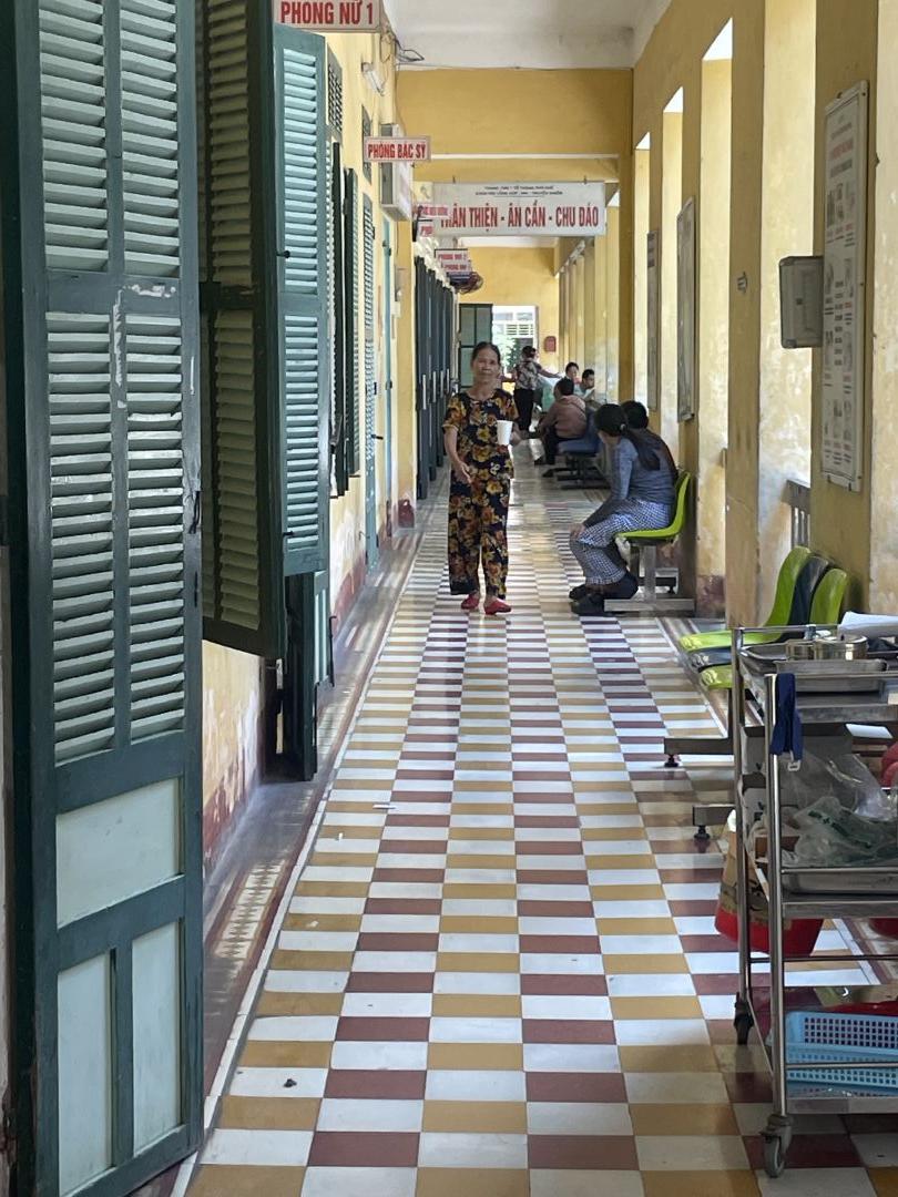 Hiện nước đã rút. Ở viện vẫn có 60 giường nội trú với 120 người vừa người nhà vừa bệnh nhân đang có thực tế tại viện.