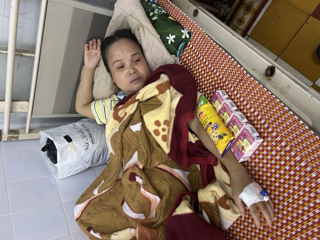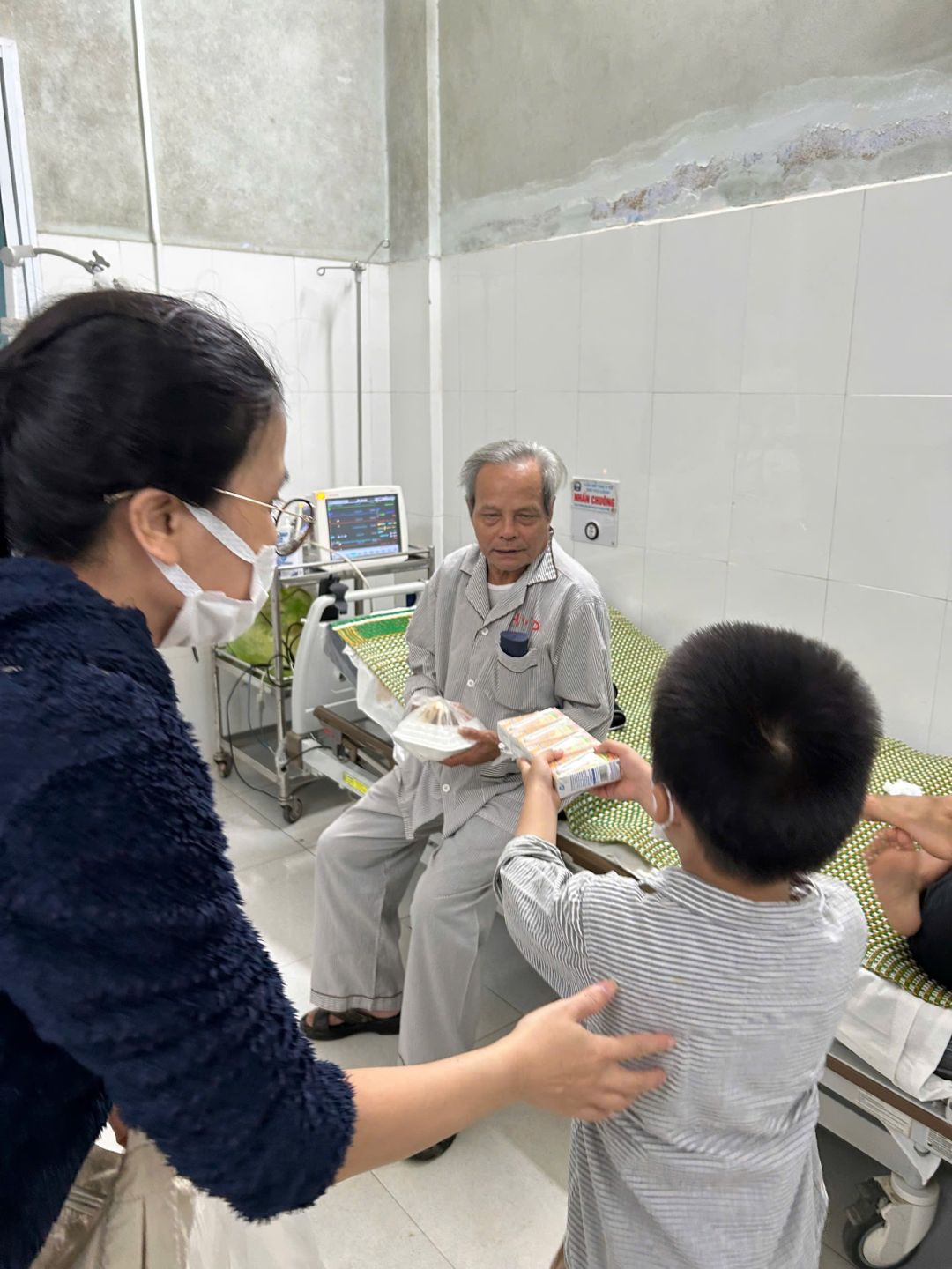 Chúng ta phát hết 120 suất xôi sữa, tại viện 119 suất. Dư một suất tặng chị bán vé số vĩa hè đường Kim Long.