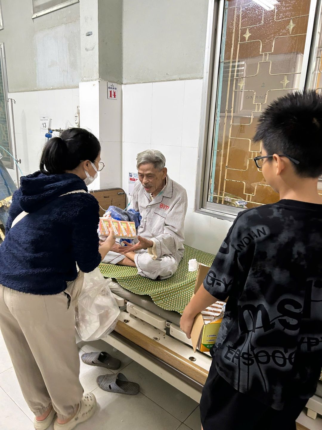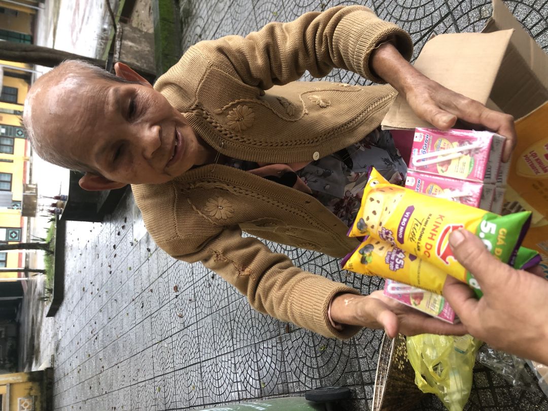 Chúng ta phát hết 120 suất xôi sữa, tại viện 119 suất. Dư một suất tặng chị bán vé số vĩa hè đường Kim Long.