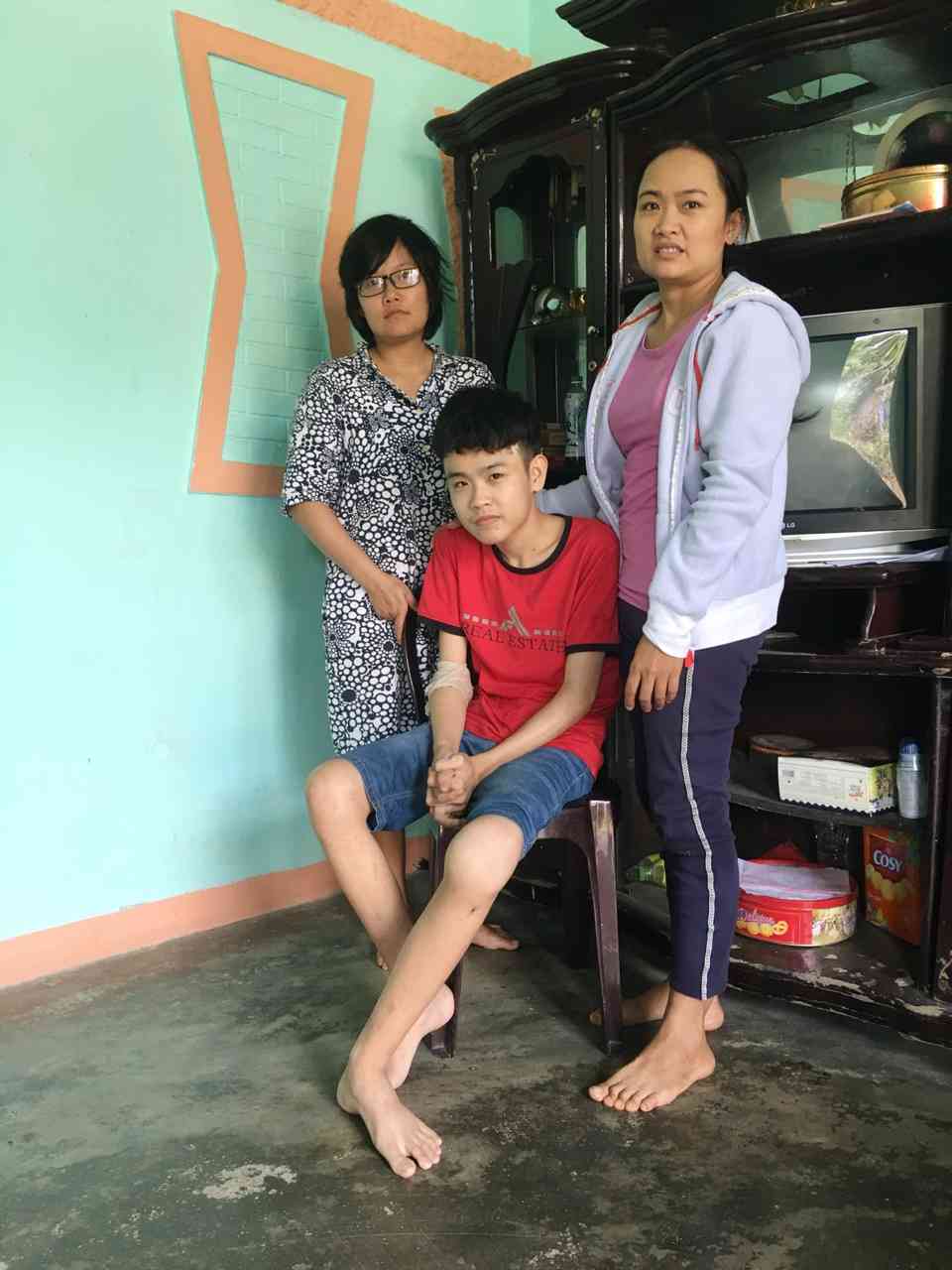 - Theo thông tin chị Nga cho biết, cháu Tuấn chuẩn bị vào lớp 6, hè này chị Nga không cho đi học thêm vì sợ cháu vui chơi rồi chấn thương. Hằng tháng, nếu có để dành được ít tiền thì chị chở cháu ra tiêm thuốc (mỗi mũi là 2.140.000 đồng) nhưng vài tháng nay chị không chở đi được vì gia đình không đủ tiền.
