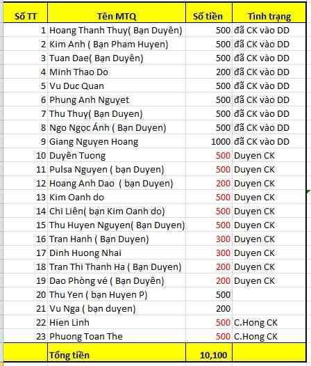 Thocon đã chuyển tiền tới Bội Châu sáng nay rồi các bạn nhé.