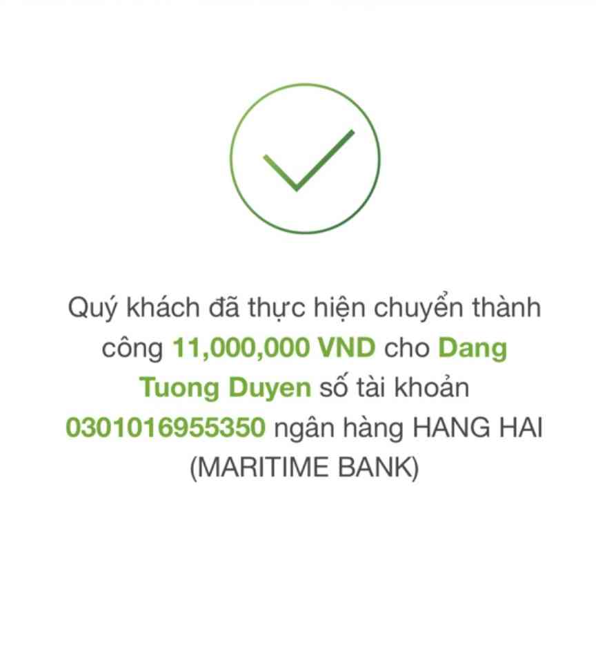 @Thocon : Em chuyển tới Bội Châu 11,000,000đ tiền các bạn khu vực Hà Nội giúp mẹ con chi Nga dùm nhé.