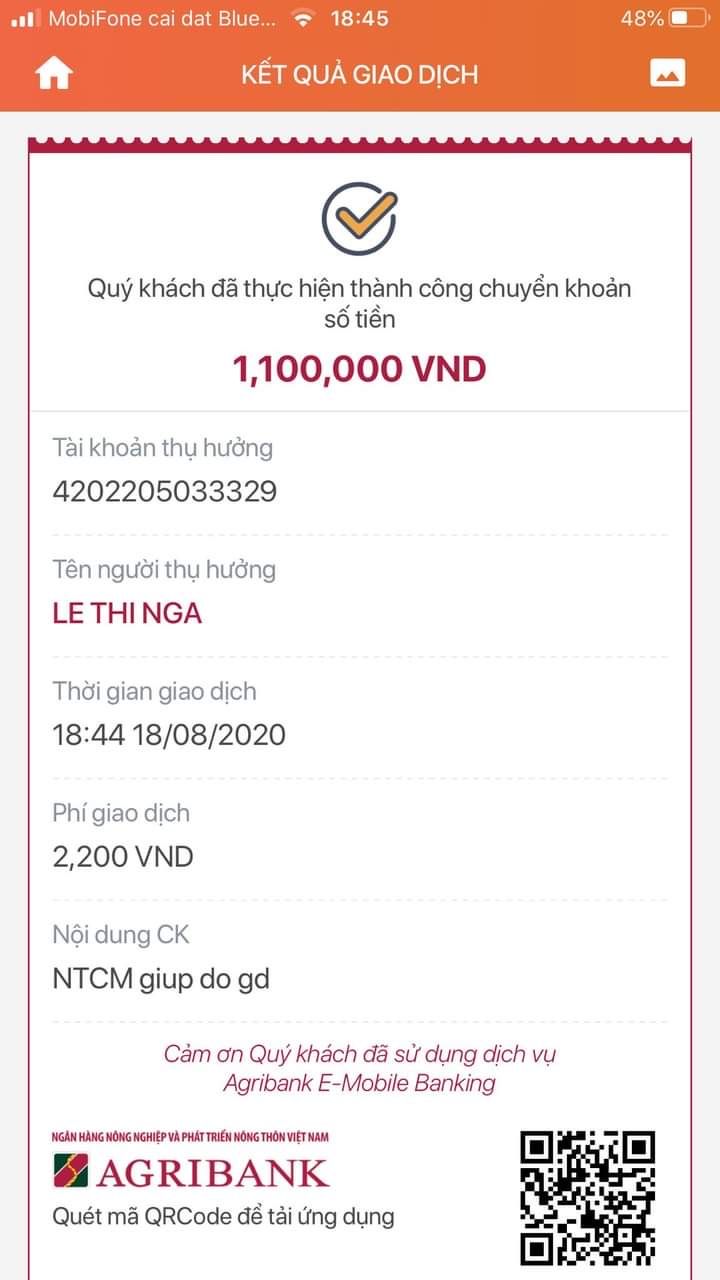 Em đã nhận được 2 triệu CMKTX từ quỹ diễn đàn chuyển cho c Nga, em sẽ ck qua tk Agribank của c Nga vì ko thể gặp chị được trong hoàn cảnh này (lời hẹn chờ hết dịch nghe cay cay sống mũi chắc như thời xưa hẹn hết chiến tránh quá).