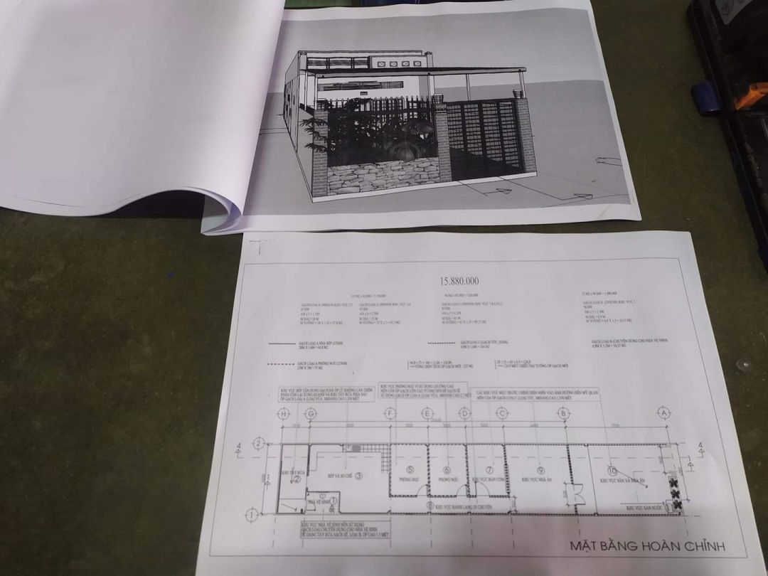 Bản vẽ thiết kế cũng đã được in ra đầy đủ để các bác thợ làm.;D