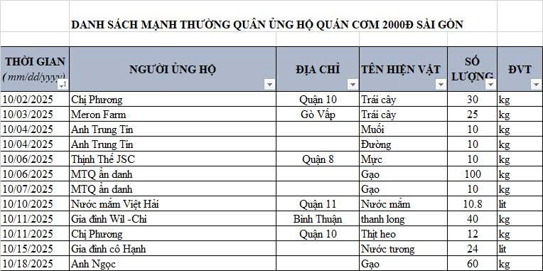 Re: Quán Cơm 2000 Sài Gòn - Cập nhật ủng hộ