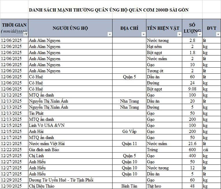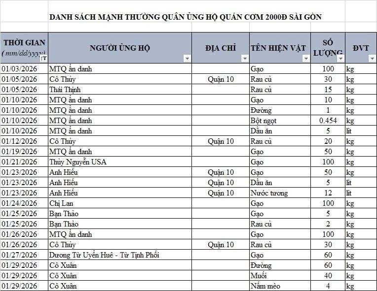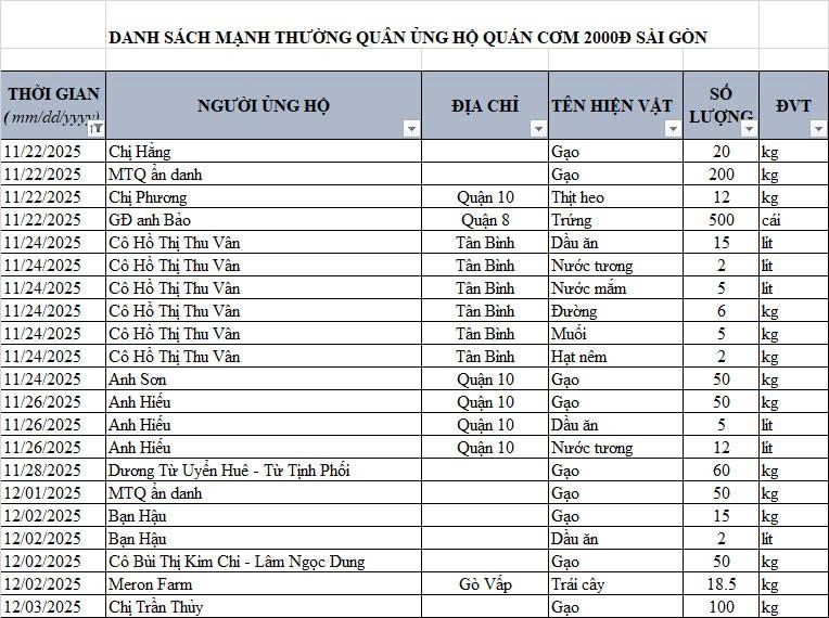 Re: Quán Cơm 2000 Sài Gòn - Cập nhật ủng hộ