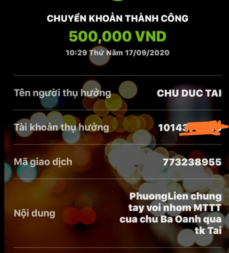 Thocon đã chuyển 500,000đ của Phượng Liên tới Duc Tai rồi nhé.