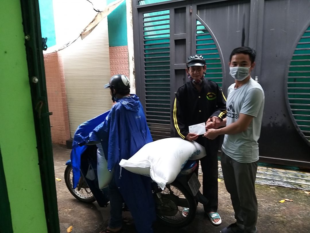 Ngày 08 tháng 08 DucTai đã hẹn chú Ba Oanh và anh em trong đội mai táng từ thiện đến nhận 100kg gạo và 5 triệu CMKTX để chú mua thêm dụng cụ và trang thiết bị.