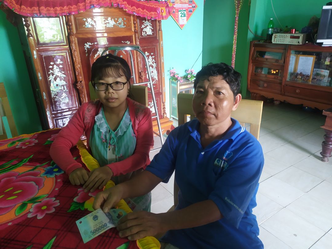 Chuyến ghe 1thăm này 6x cũng gửi Ngọc Ngân 1,000,000đ của Michele_du giúp cháu mua sắm thêm đồng phục và đồ dùng học tập chuẩn bị cho năm học mới.