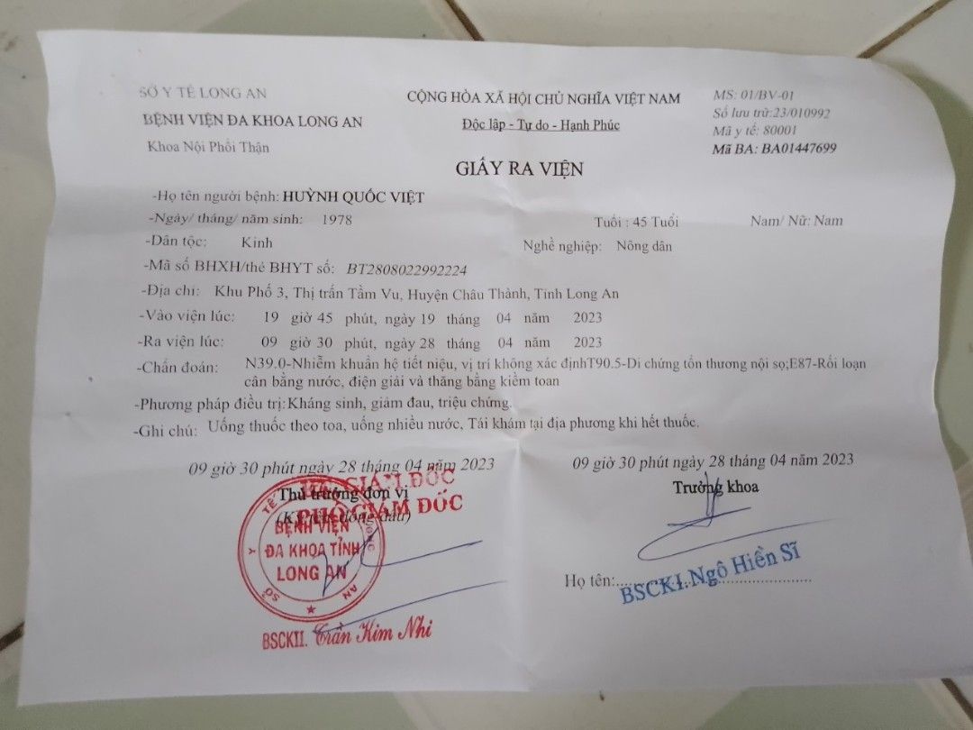 Đây là giấy xuất viện của bạn Việt