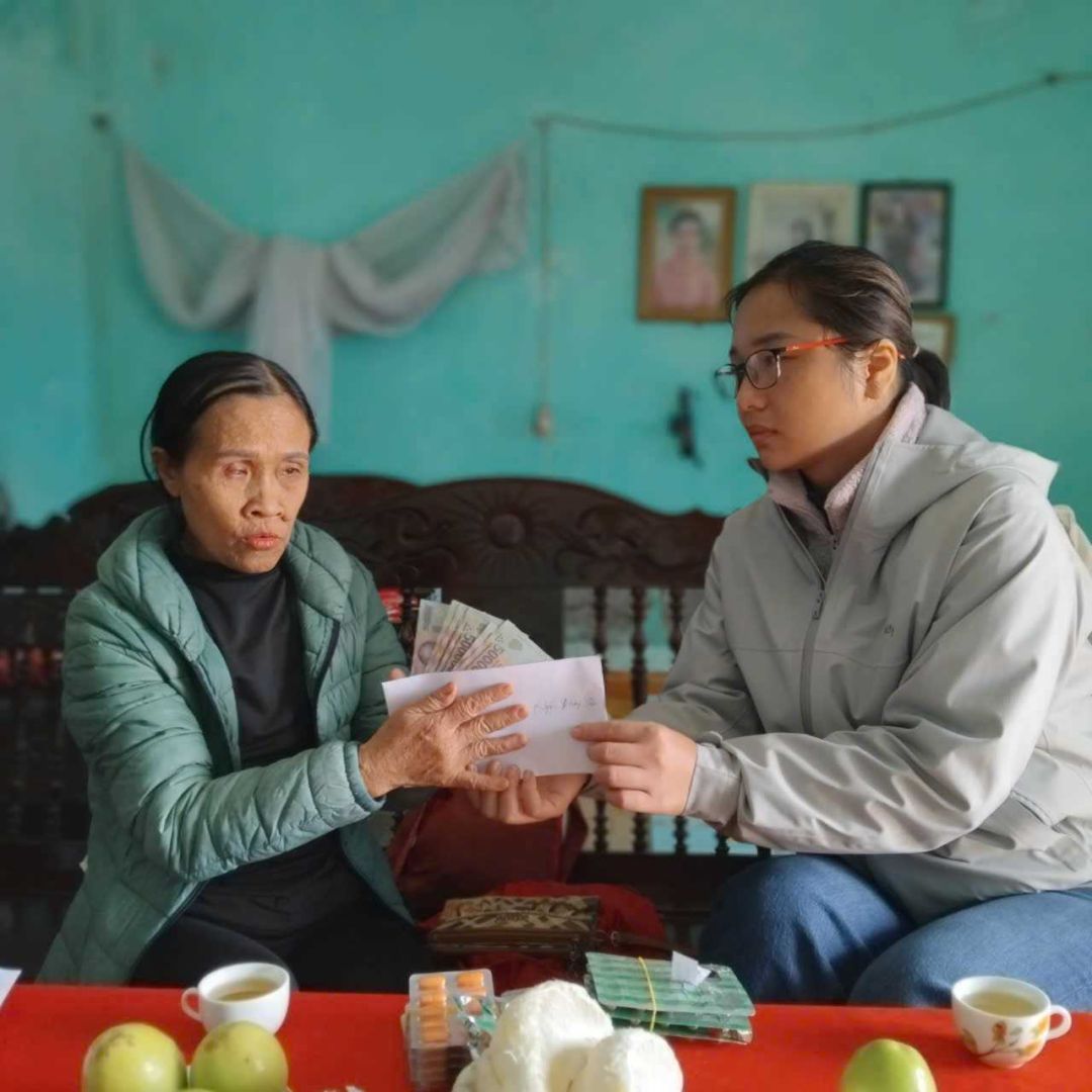Em xin nhận tiền để ra Tết trao cho chị Ngà ạ.