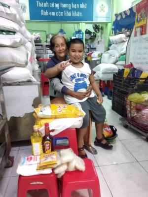 Hôm qua (14/11/2019) chị Tư và cháu Gia Khang ghé qua Quán cơm 2000đ-SG nhận một số nhu yếu phẩm như sau :