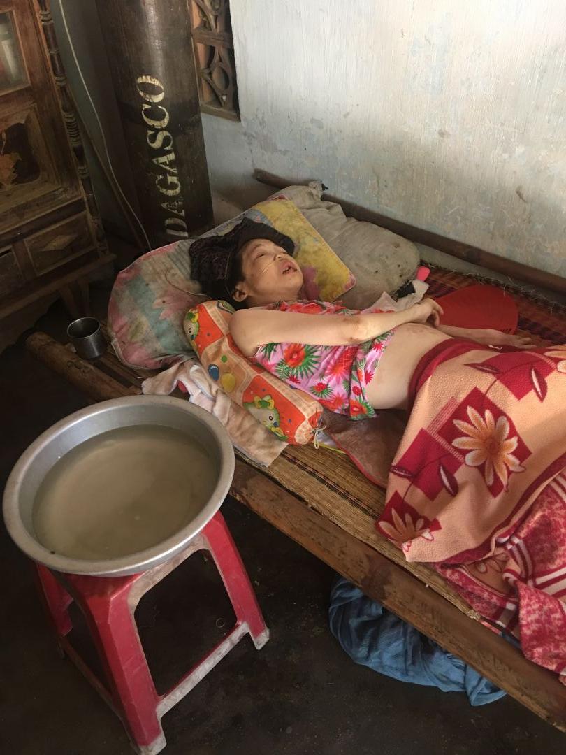 Chị thứ 2 tên Nguyễn Thị Phát (45 tuổi) mới đi bv 20 ngày do bị u ở bàng quang, bv cho về hiện thở oxy ở nhà, ăn cháo xay, vẫn năm một chõi