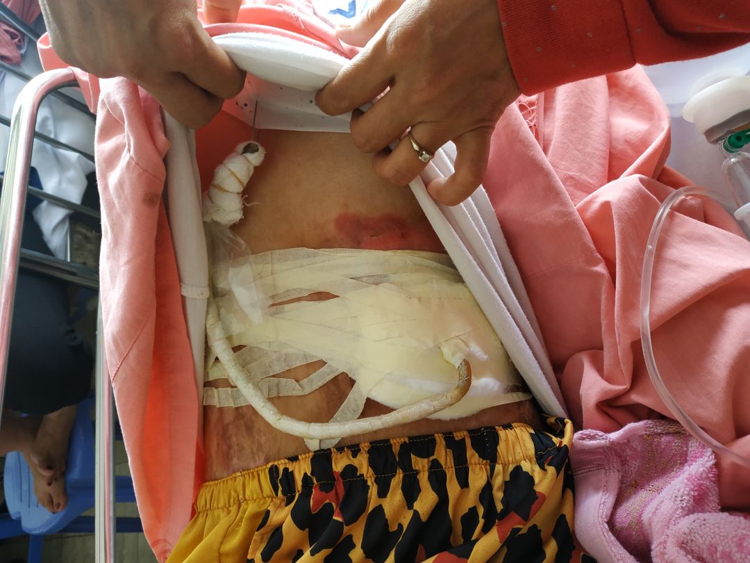 Tình hình sức khỏe của em hiện tại rất yếu, tạm thời chỉ truyền dinh dưỡng, nước muối để em hồi phục sức khỏe. Đợi sức khỏe của em ổn định trở lại, các bác sĩ mới có thể thay ống dẫn mới được.