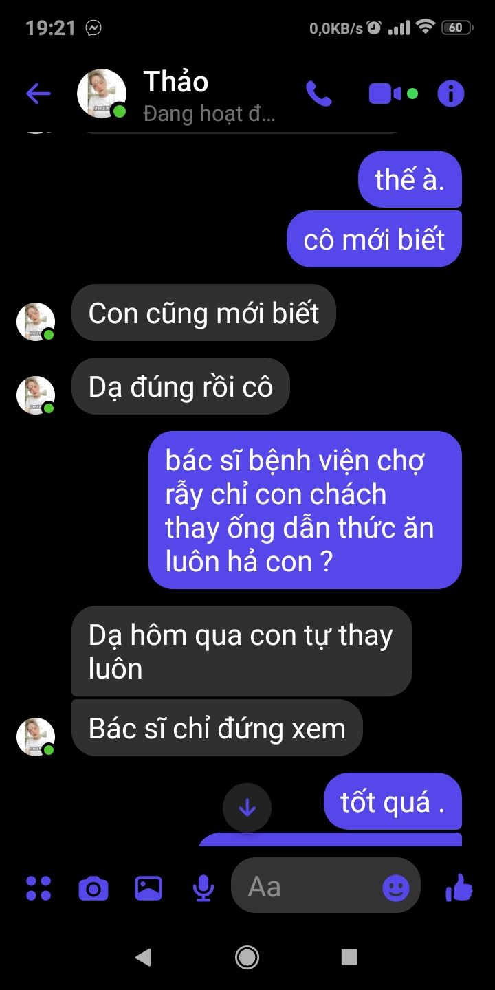 Trước mắt chúng ta giúp cháu Thảo việc thay ống dẫn thức ăn như đề xuất của Maitramtg.