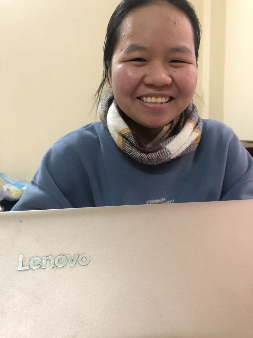 Hình ảnh cháu Trang ở nhà HBL hôm 14/2. Từ khi có Laptop và được HBL hỗ trợ tìm chỗ ở, việc làm thêm, cháu tươi tắn hẳn lên, khác hẳn hôm mới lên trước đó 3 ngày.