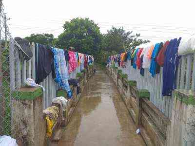 Lối vào khu ở của các em, cây cối rất nhiều, mát mẻ