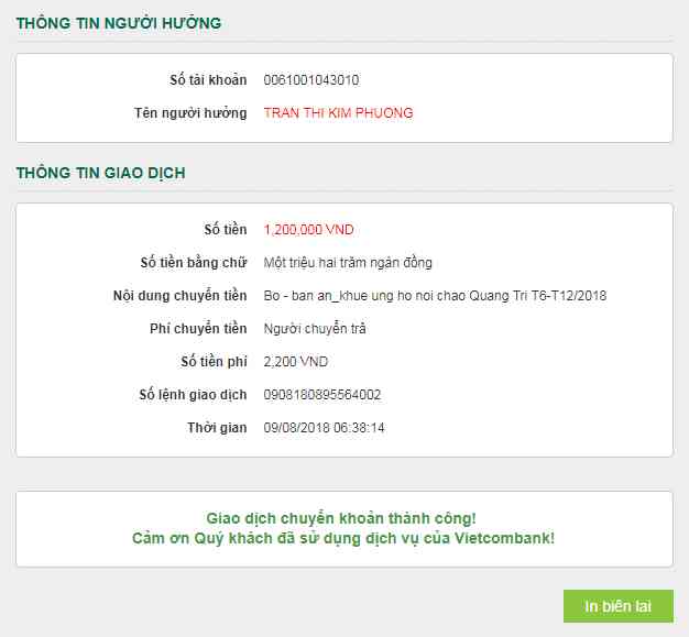 an_khue tiếp tục chuyển giúp bạn ủng hộ của 6 tháng cuối năm 2018. Chúc nồi cháo Quảng Trị luôn đỏ lửa