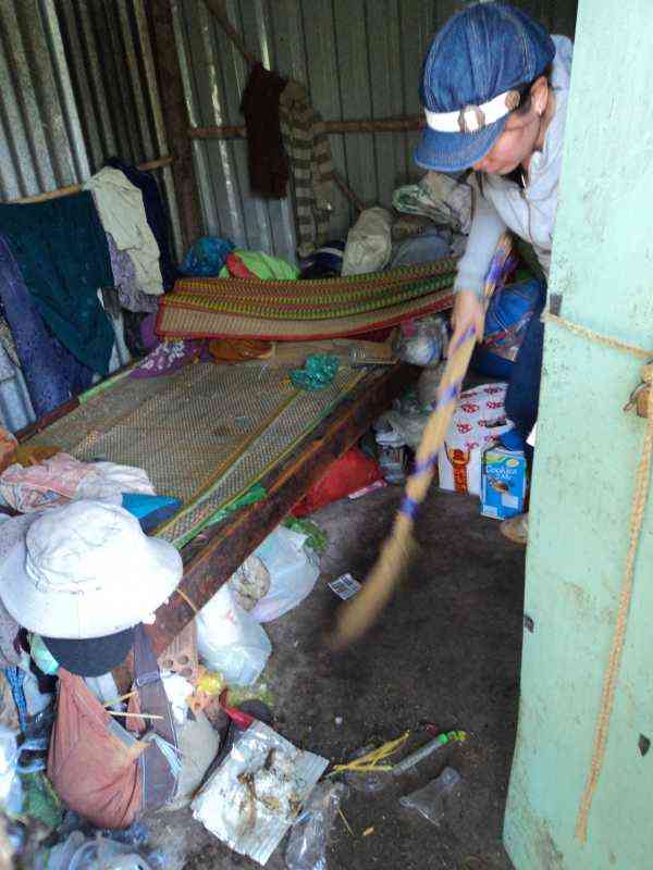 Tháng 7 âm lịch này cụ Liên đi xin ăn trước cổng chùa như mọi năm. Nhà của cụ vẫn bày ra đủ thứ lộn xộn như xưa. Chị Thanh giúp cụ dọn dẹp lại nhà  :(