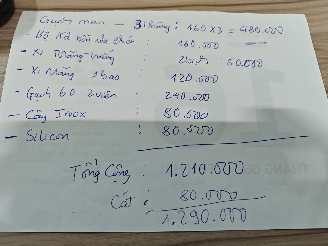 -Chi phí vật tư phát sinh thêm là 1,290,000đ (danh sách kèm theo trong ảnh)