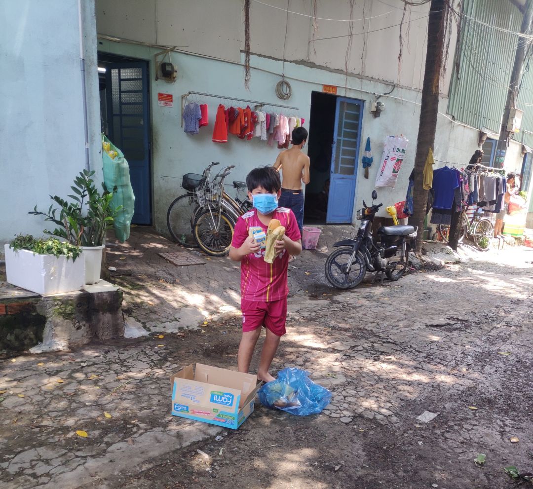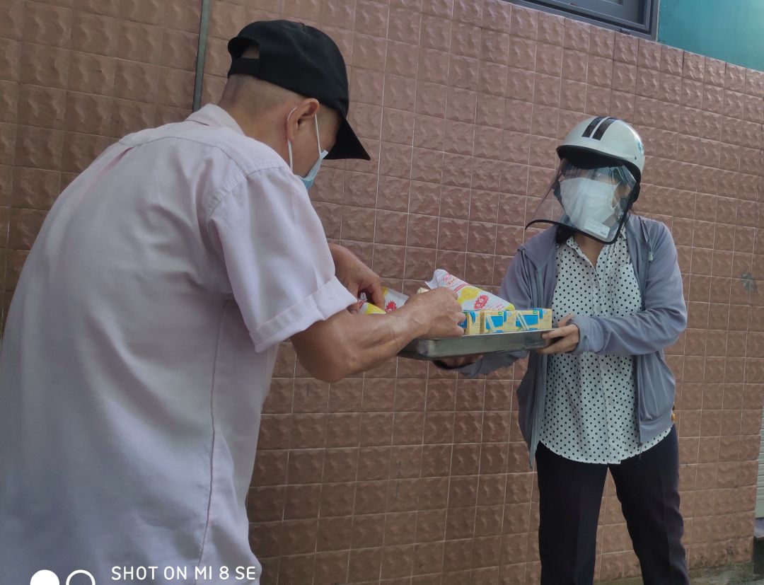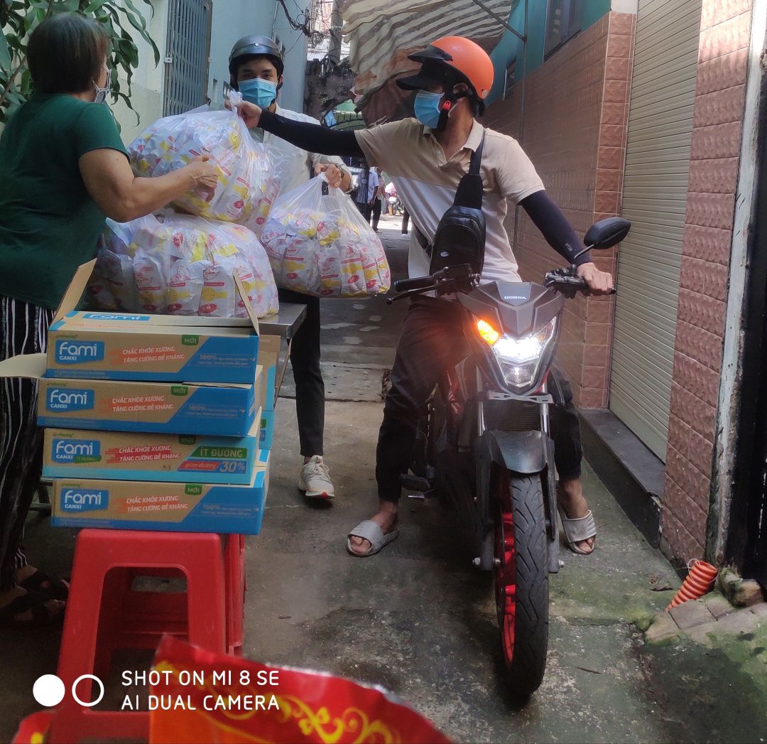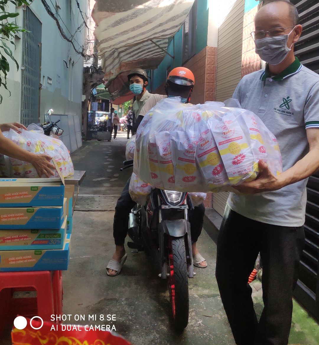 hôm nay Thứ 3 ngày 2/11/2021. buổi hoạt động của quán cơm.gửi cả nhà một số hình ảnh chị Nghĩa đi Phát bánh mì Sữa đậu nành cho bà con khó khăn ở khu vực SG.